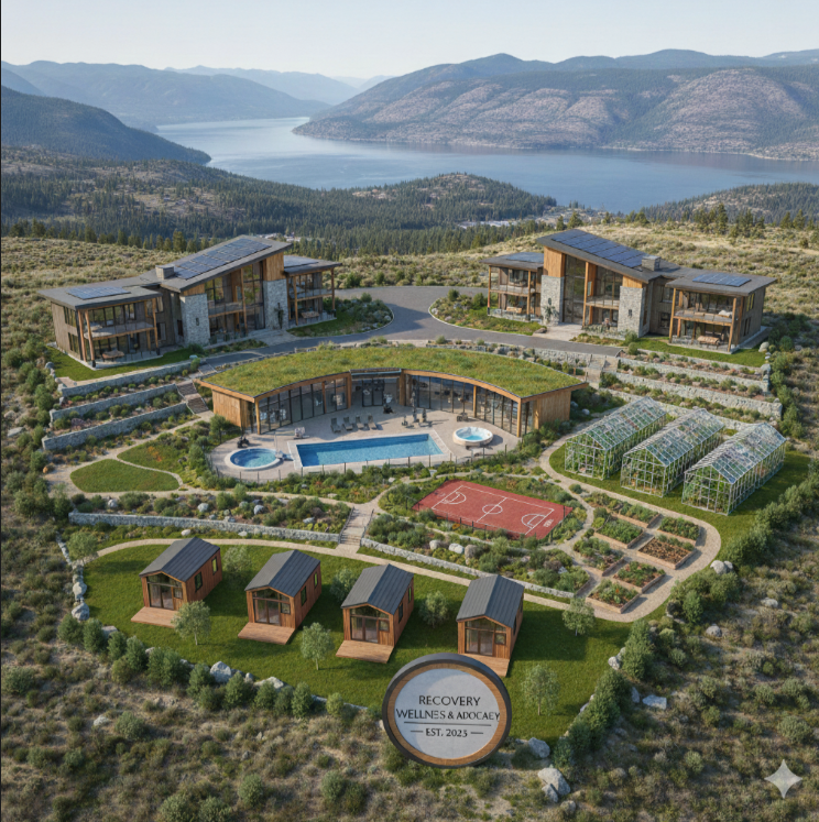 The Recovery Wellness & Advocacy Society (RWAS) is developing a 32-acre wellness campus designed to support lasting, whole-person recovery. At its heart are two distinct 40-bed residential facilities, offering separate, trauma-informed spaces for men and women—addressing a critical need for gender-responsive care within the Interior Health region.